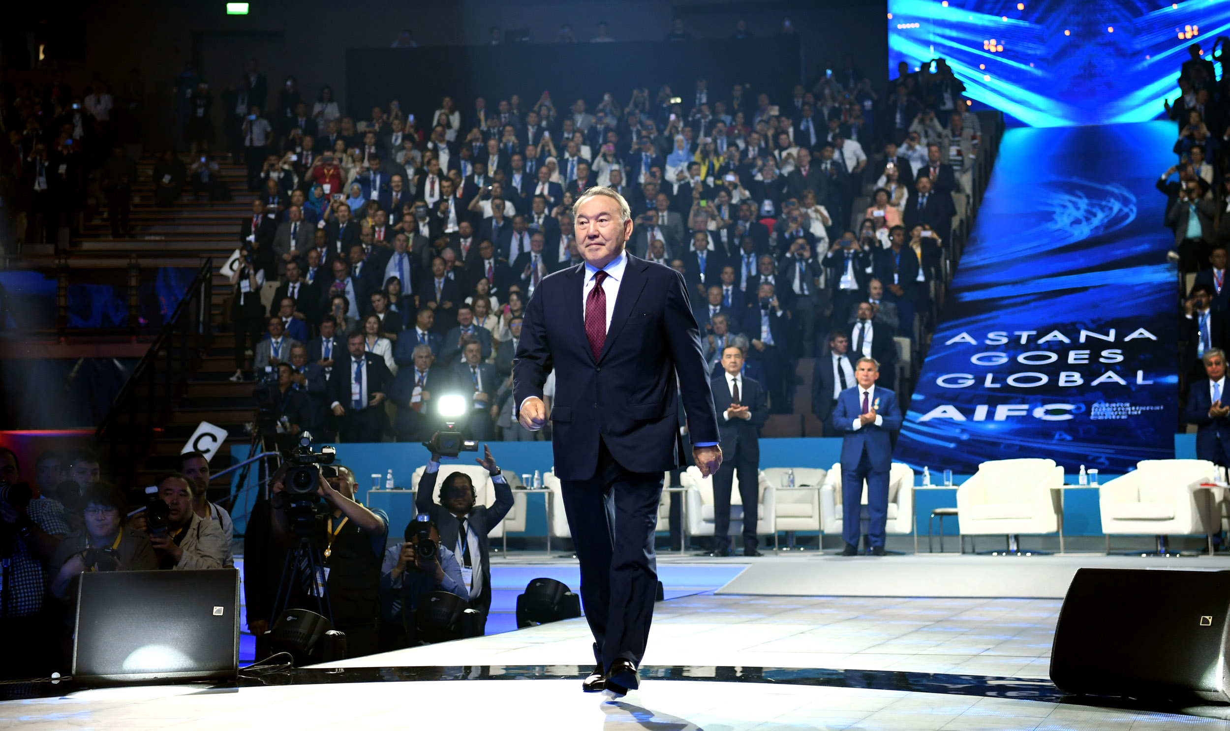 – Biz Astana úshin osynaý aýqymdy ári mańyzdy sharaǵa kóńilimiz erekshe tolqyp, zor qýanyshpen kelip otyrmyz. Qazaqstan – ǵasyrlar toǵysynda keń dalada ásem astana turǵyzǵan álemdegi jalǵyz memleket. «Astana» halyqaralyq qarjy ortalyǵy – táýelsiz Qazaqstan tarıhynyń jańa kezeńiniń bastaýy, dedi Nursultan Nazarbaev.