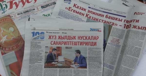 Qyrǵyz halqynyń «Egemen Qazaqstan»-men dáýirles, bıyl tarıhyna 95 jyl toltyryp otyrǵan kóshbasshy basylymdarynyń biri – «Erkın Too» jáne «Kyrgyz Týýsý» gazetteri aıqarma betin qazaq baspasóziniń mereıtoıyna arnady. Basylym basshysy Darhan Qydyrálimen salıqaly suhbat júrgizip, júz jyldyq jylnama tarıhyn baýyrlas aǵaıynǵa keńinen tanystyrdy. Aqjarma tilek, aǵeden peıilderin joldady.
