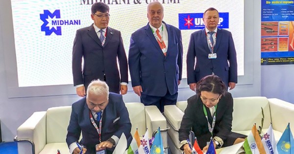 Shara barysynda "О́TMK" AQ prezıdenti Ásem Mamýtova men Úndistan Qorǵanys mınıstrliginiń memlekettik kásiporny Mishra Dhatu Nigam Limited (MIDHANI) kompanııasynyń basqarma tóraǵasy doktor Dınesh Kýmar Lıkhı yntymaqtastyq týraly memorandýmǵa qol qoıdy, onyń sheńberinde tıtan bıoımplanttary men medısınalyq quraldar óndirisi salasyndaǵy áriptestik yntymaqtastyq nyǵaıa túspek.