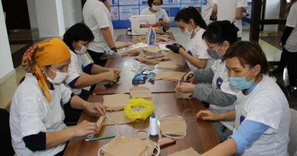 Oblystyq QHA músheleri, «Qoǵamdyq kelisim» KMM qyzmetkerleri, volonterler, «Bitim» medıasııa ortalyǵy, «Jańǵyrý joly» jastar qozǵalysynyń belsendileri kúnine 500-den astam medısınalyq betperde tigip, ony az qamtamasyz etilgen, kóp balaly otbasylarǵa tegin taratady.