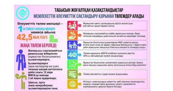 Bul máselede eki nárseni jaqsy túsinip alǵan durys. Birinshisi, tótenshe jaǵdaı kezinde májbúrli túrde jalaqysy saqtalmaıtyn demalysta bolýyna baılanysty tabysyn joǵaltqan Qazaqstan azamattaryna tólemder beriledi. Iаǵnı ol azamattar jumystan birjolata bosap ketken joq, qazirgi jaǵdaıǵa baılanysty jalaqysy tólenbeıtin demalysqa jiberilgen. Mundaı jaǵdaıda bir qyzmetkerge 42,5 myń teńge kóleminde áleýmettik tólem beriledi. Ekinshisi, jumysynan bosatylǵan, jumyssyz qalǵan qyzmetkerlerge de aqsha tólenedi. Iаǵnı joǵalǵan kiristiń 40 paıyzy mólsherinde tólem beriledi. Tólem jasaýǵa baılanysty ár óńirde jáne respýblıkalyq mańyzy bar qalalarda arnaıy shtabtar qurylǵan. Ol shtabtarǵa jańa tólemdi alamyn deıtin jumys berýshiler, taǵy da qaıtalap aıtamyn, jumyskerlerdiń ózderi emes, tek jumys berýshiler ótinish beredi. Shtabtar ol ótinishterdi qarap, «Azamattarǵa arnalǵan úkimet» memlekettik korporasııasyna ótkizedi. Korporasııa tizimdegi azamattardyń qujattaryn túgendep, tekserip, Memlekettik áleýmettik saqtandyrý qoryna jiberedi. Tizimdegi azamattarǵa bul áleýmettik tólemdi berýdiń durys nemese burys ekenin osy qor aıtady. Osy prosestiń barlyǵy 7 jumys kúniniń ishinde atqarylýy tıis.