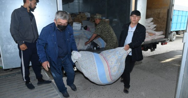 Al búgin Jambyl oblysy ákimdigi uıymdastyryp, jibergen 30 tonnadan asa azyq-túlik tıelgen kerýeni Maqtaaral aýdanyna keldi.