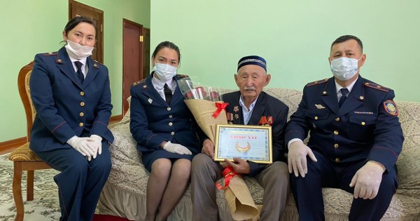 QAJ qyzmetkerleri ardagerge ZK-69/5 mekemesiniń bastyǵy, ádilet podpolkovnıgi T.Qalymbetovtiń alǵys hatyn tabystap, sálemin jetkizdi. Qart maıdanger ózine kórsetilgen qurmet úshin alǵys aıtty.