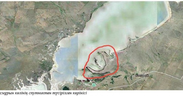 Ata-babamyz atalmysh kóldi «Qos túbek», ıaǵnı «Qosmuryn» dep ataǵanynda bir sebep bar ǵoı dep, zamanýı quraldarǵa júginýdi jón kórdik. Sóıtip Google-diń kóktegi spýtnıkten túsirgen kartasyna nazar aýdarǵanymyzda, tańdanystan shalqamyzdan tússe jazdadyq. Onda Qusmuryn kóline suǵyna enip jatqan eki túbek taıǵa tańba basqandaı kórinip tur (sýretti qarańyz).