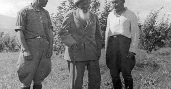 SÝRETTE: Jambyl uly Tezekbaımen jáne Ǵalımen birge. (Sýret Jambyldyń 75 jyldyq shyǵarmashylyq mereıtoıyna arnap shyǵarylǵan fotoalbomnan alyndy)
