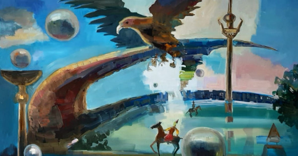 Máselen, sýretkerdiń biz usynǵan kartınasyna nazar salyńyzshy. Qyran qus, qysh ydystar, atty adam, sham, domalanǵan dúnıe bári-bári alystan munartady, olar ár dáýirdiń belgileri, biraq kenepke kenetten qonbaǵan. Avtordyń oılaý órisi aspandy tutastaı bir jaryqtyń sheńberine baılap, ótken men búginginiń arasyna shekara qoımaıdy. Shyǵarmanyń ereksheligi de osynda.