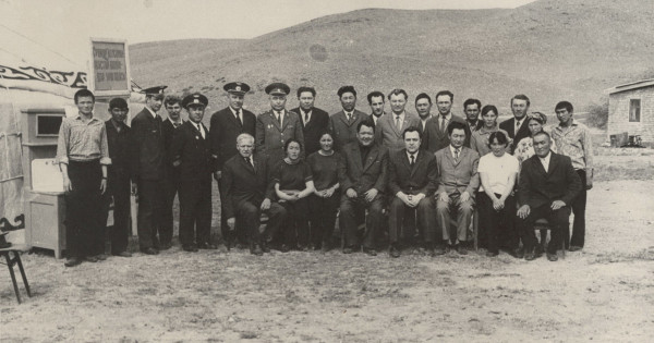 «Aıdarly» keńsharyndaǵy «Suńqar» Moıynqumdaǵy osyndaı ujymnyń ozyǵynyń sanatynda bolǵandyqtan, oǵan joǵary jaqtan qonaqtar jıi-jıi at izin salatyn. Jetpisinshi jyldardyń ortasynda túsirilgen myna sýrette sondaı sáttiń biri beınelengen: Qazaqstan Kompartııasy Ortalyq komıtetiniń ekinshi hatshysy Valentın Karpovıch Mesıas (birinshi qatarda oń jaqtan tórtinshi, 1976 jyldan bastap KSRO Aýyl sharýashylyǵy mınıstri bolǵan, ol kisiniń oń jaǵynda Jambyl oblystyq partııa komıtetiniń birinshi hatshysy Hasen Bekturǵanov, sol jaǵynda Moıynqum aýdandyq partııa komıtetiniń birinshi hatshysy Aıtbaı Nazarbekov) Hantaýy bókterindegi «Suńqar» komsomol-jastar shopandar brıgadasy músheleri, sondaı-aq basqa da aýdandyq deńgeıdegi jetekshiler men atalǵan keńshar basshylarynyń arasynda.