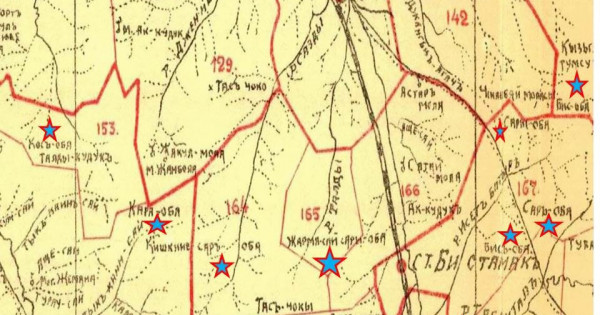 Sondaı-aq Qostanaı ýeziniń patsha zamanyndaǵy kartalarynda Obaly kól, Obaly taý, Qos oba, Aq oba, Qara oba degen ózen-kól ataýlary bar (2 sýrettegi juldyzshamen aıshyqtalǵan ataýlarǵa qarańyz).