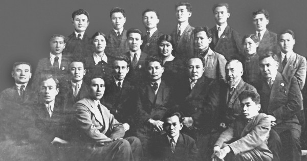«1938 jyldyń dekabr aıy. Instıtýttyń sońǵy kýrsyna aıaq basqan bolatynbyz. Birge oqıtyn fakýltet shákirtteri jınalyp, stýdenttik kezden eskertkish bolsyn dep ulaǵatty ustazdarymyzben sýretke túsýge kelistik.