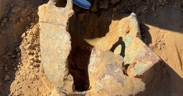 – Arheologııalyq qazba kezinde qos qorǵanda erte temir dáýirine jatatyn jerleý orny bar ekeni anyqtaldy. Tonalmaǵan jerleý oryndarynan eki áıel men bir er adamnyń múrdesi tabyldy. Jerleý oryndary bizdiń zamanymyzǵa deıingi V ǵasyrǵa sáıkes keledi. О́ıtkeni bir múrdeniń janynan úsh altyn bilezik, eki altyn saqına men syrǵa, kúmis alqa jáne jebe, al ekinshi qabirden bal ashýǵa qajetti zattar men qurban shalýǵa arnalǵan qurbandyq tasy shyqty. Al shamamen 2,5 myń jyl buryn ómir súrgen er adam jerlengen qabirden qanjar, naıza, qaıraq, er toqymnyń tireýishi, 100-ge jýyq jebe men synǵan qazannyń qaldyǵy tabylyp otyr, – deıdi Muhambetqalı Kıpıev.