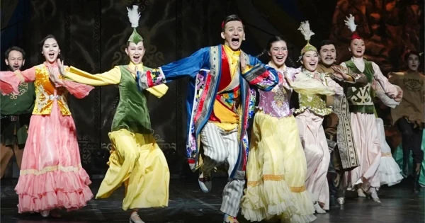 – Alyp báıterek. Qasıetti taıqazan. Qazaqy oıý. Astarly ázil. Oıly áýen. «Qara jorǵa» bıi. Sıqyrly taıaqtyń qupııasy men sýdyń sıqyry. Mystan kempirdiń aılakerligi. Zamanaýı Aldar kóse beınesi. Erjúrek batyrlardyń dáýmen shaıqasy. Munyń barlyǵy balalar úshin arnaıy bazarlyq desek bolady. Balalarǵa arnalǵan ertegini mýzykalyq dramanyń tilimen, mıýzıkl janrymen jetkizýge tyrystyq. Qoıylymnyń ssenarııi de jańadan jazyldy. О́ıtkeni bizdiń jas kórermenderimizge ulttyq muramyzdy zamanaýı tilde túsindirý mańyzdy dep oılaımyn. Qazirgi aqparattyq tehnologııa dáýirinde Marvel-diń qaharmandarymen básekege túsýimiz kerek. Ulttyq qundylyqtarymyzdy saqtaı otyryp, mıýzıkldiń sahnalyq dekorasııasyn da erekshe etip jasadyq, – dedi qoıylym rejısseri Eslám Nurtazın.