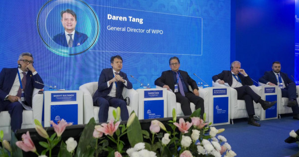 Paneldik sessııada Dúnıejúzilik zııatkerlik menshik uıymynyń (DZMU) Bas dırektory Daren Tang Qazaqstanǵa alǵashqy resmı saparymen kelgenin aıtty. Ol Qazaqstannyń osy saladaǵy bolashaqqa baǵdarlanǵan jáne teńgerimdi saıasat júrgizip otyrǵanyn, sonymen qatar jasandy ıntellekt pen sıfrlyq ekonomıka jaǵdaıynda zııatkerlik menshik júıelerin transformasııalaý boıynsha jahandyq pikirtalastarǵa belsendi qatysyp otyrǵanyn joǵary baǵalady.