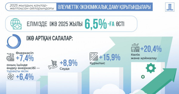 Jalpy alǵanda, 2025 jyldyń qorytyndysy boıynsha ekonomıkanyń jıyntyq ósimi negizgi salalardyń turaqty damýyn kórsetti.
