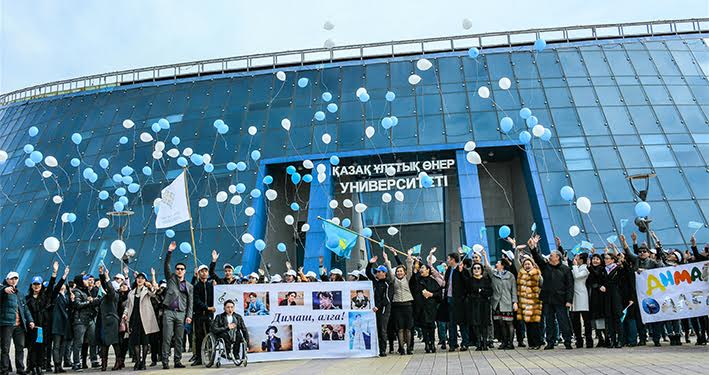 «Fleshmobqa ýnıversıtetimizdegi barlyq fakýltetterdiń stýdentteri qatysýda. Olar Dımashqa osylaısha ózderiniń tilekterin bildirip, qoldaý kórsetkisi keledi. Dımashqa tabys tileımiz. Qazaqstannyń atyn álem sahnalarynda tanyta berýine tilektespiz", dedi Qazaq ulttyq óner ýnıversıtetiniń prorektory Turar Álipbaev.