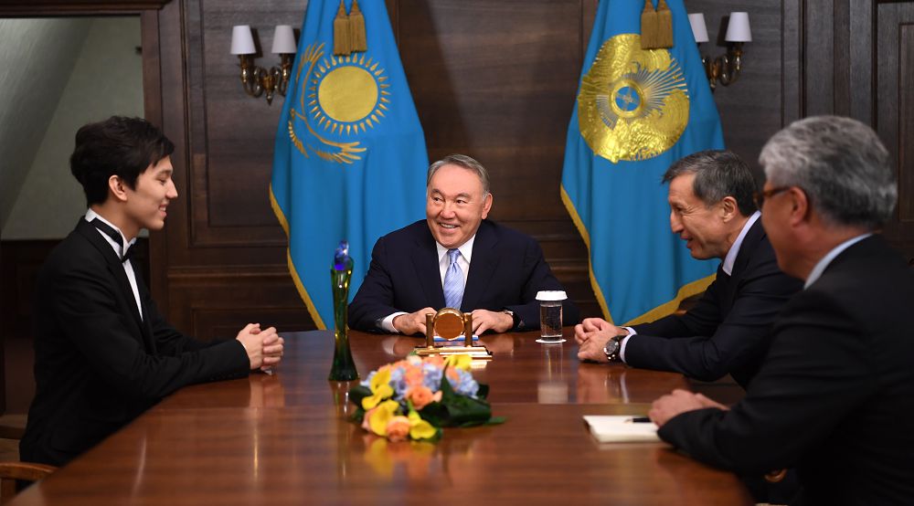 Nursultan Nazarbaev Beıbitshilik jáne kelisim saraıynda Qazaqstan halqy Assambleıasynyń XXV sessııasy bastalar aldynda jas ánshi Dımash Qudaıbergenovpen kezdesti.