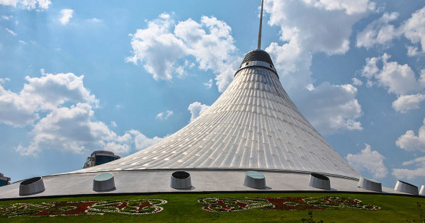 Shahardyń jańa ortalyǵynyń dál kindiginde ornalasqan ásem ǵımarat kóshpeli qazaq halqynyń kóshpeli tirshiliginen habar berip qana qoımaı, sol halyqtyń óz qolymen turǵyzǵan han shatyrlarynyń tutas bir jıyntyq kórinisi ispetti elesteıdi. Elordanyń sol jaǵalaýynan oryn tepken alyp nysannyń qurylysyn aǵylshyndyq Foster & Parthers fırmasy jobalasa, túriktiń «Sembol Inshaat» kompanııasy ony sońyna deıin jetkizgen. Byltyrǵy jyly qala kúninde paıdalanýǵa berilgen, aınalasy 4 jyldyń ishinde boı kótergen, berik monolıttik metall qondyrǵylarynan turatyn «Shatyrdyń» bıiktigi 150 metrdi, al jalpy aýmaǵy 133 sharshy metrdi quraıdy.