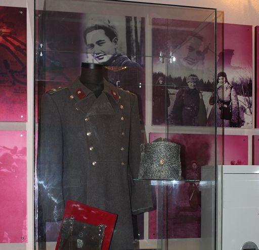 Áýeli mýzeı qyzmetkeri Aıdana Shoraeva bizdi Baýyrjan Momyshulynyń polkovnık shenindegi shınelimen tanystyrdy. Tabanda oıymyzǵa oralǵan aqıyq aqyn Qasym Amanjolovtyń «Ústimde sur shınelim, aqsańdaı basyp kelemin» degen óleń joldary men batyrdyń ózi kıgen shıneli otty jyldardan eles berip turǵandaı boldy. Sol kúnderdi kózben kórmesek te, kóńilge túısingen kúıi ilgeri bastyq. Talaı taǵdyr tartysyn kórgen bul kıim mýzeı tórinde naq bir batyr tulǵasyndaı asqaqtap turdy.