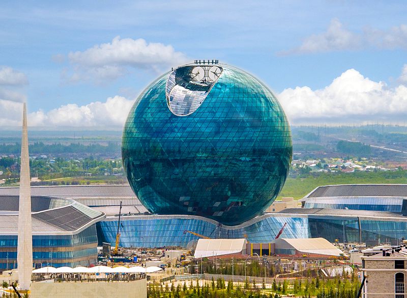 Ulttyq bas pavılon ǵımaraty –Sfera álemdegi eń úlken sferalyq (barlyq núkteleri ortalyqtaǵy núkteden birdeı qashyqtyqta bolatyn tuıyq shar) ǵımarat bolmaq. Onyń dıametri 80 metrdi qurasa, bıiktigi 100 metrdi quraıdy. Sfera segiz qabattan turady. EKSPO-2017 kórmesin uıymdastyrýshylardyń jobasy boıynsha Sferanyń árbir qabaty balama elektr qýatynyń bir túrin kórsetetin bolady. Atap aıtar bolsaq, birinshi qabatta gıdroenergetıkanyń, ekinshi qabatta kún energetıkasynyń, úshinshi qabatta jel energetıkasynyń, tórtinshi qabatta bıoenergetıkanyń jáne basqa qýat kózderiniń jetistikteri kórinis tabady.