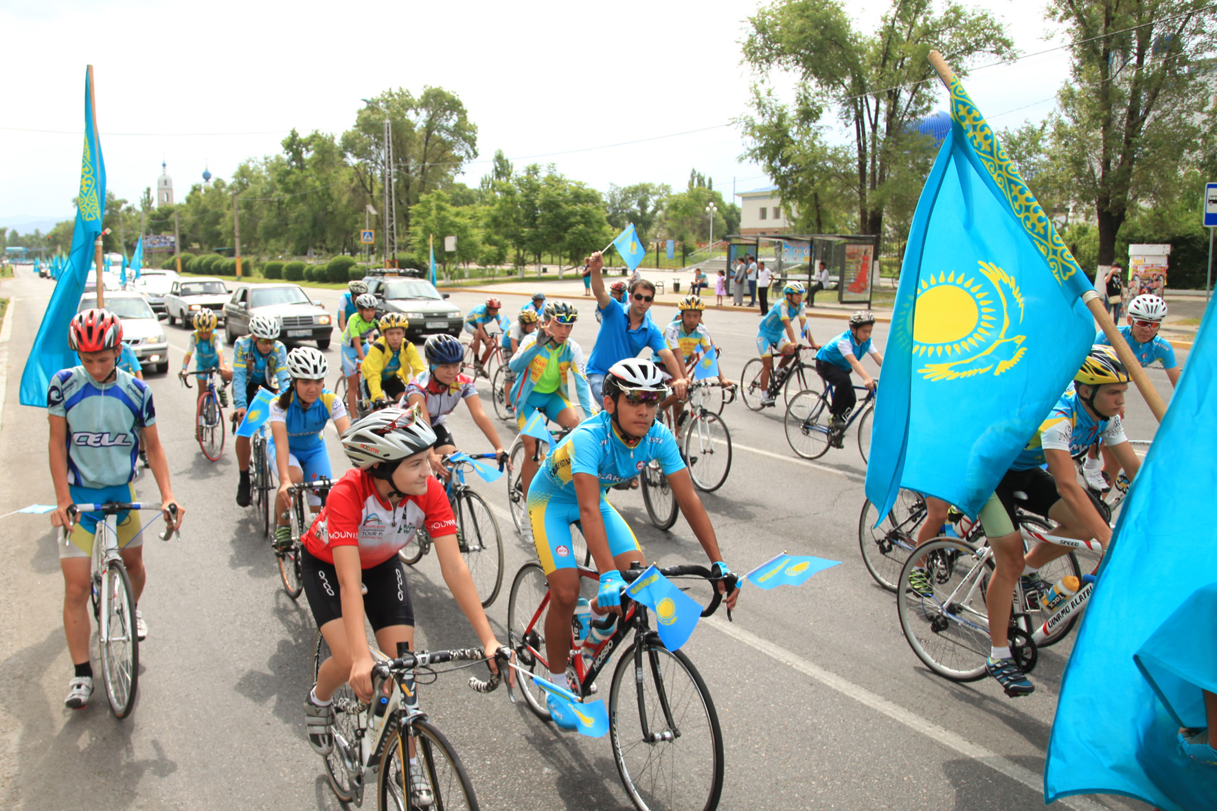 4 maýsym – Qazaqstan Respýblıkasynyń Memlekettik rámizderi kúnine oraı, Taraz qalasyndaǵy «Dostyq» alańynan bastap Tóle bı dańǵyly boıyndaǵy Qazaqstan Respýblıkasy Tuńǵysh Prezıdenti saıabaǵyna deıin merekelik sherý uıymdastyryldy. Oǵan oblys ákimi Kárim Kókirekbaev bastaǵan jergilikti memlekettik qyzmetshiler, ardagerler men sportshylardan quralǵan barlyǵy jeti júzden astam adam qatysty. Sondaı-aq, el rámizderiniń 25 jyldyǵyna oraı uıymdastyrylǵan saltanatty shara barysynda sherý quramynda bolǵan Qazaqstanda jasalǵan 25 avtokólik pen 25 veloshabandozdar da qala turǵyndarynyń kózaıymyna aınaldy. Birneshe shaqyrymdy jaıaý júrip ótken sherý quramyndaǵylar patrıottyq rýhta áńgimeler aıtyp, jastardy el rámizderin árdaıym qurmetteýge shaqyrdy. Al áskerı qyzmetshilerdiń Memlekettik Tý, Eltańba sııaqty qundylyqtarymyzdy qasterlep, joǵary kóretip júrýleri de sherý kórkin asha tústi.