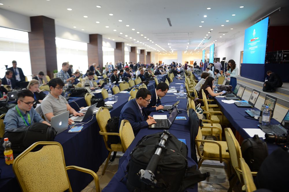 Sammıtti uıymdastyrýshy ári tóraǵalyq etýshi eldiń basshysy retinde Qazaqstan Respýblıkasynyń Prezıdenti Nursultan Nazarbaev uıymnyń búginge deıingi atqarǵan jumysyna joǵary baǵa bere kelip, jańadan qabyldanǵan Úndistan men Pákistannyń premer-mınıstrlerin múshelikke qabyldanýymen quttyqtady.
