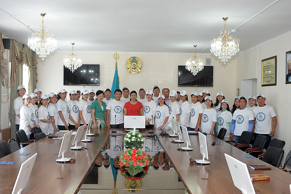 Stýdenttermen kezdesý barysynda oqý ornynyń basshysy bilimgerlerdi oqý jylynyń aıaqtalýymen quttyqtap, álemdik tehnologııalyq úderiske zor úles qosatyn «EKSPO-2017» kórmesiniń máni men mańyzyna toqtaldy.