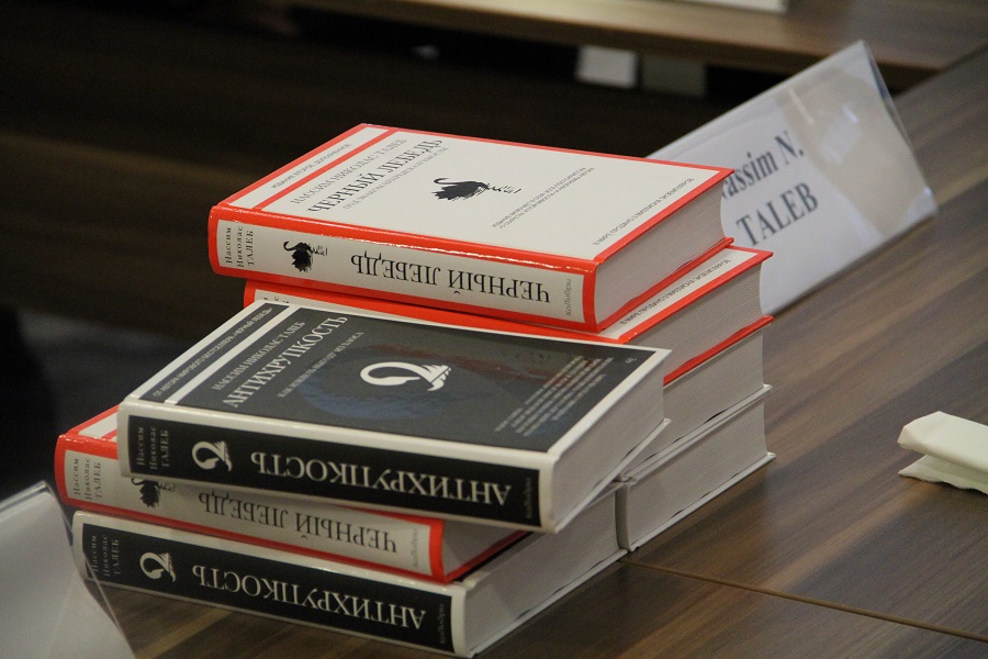 – Nassım Talebtiń kitaptary álemdik bestsellerge aınaldy. QR Tuńǵysh Prezıdenti – Elbasy Qorymen birge biz avtordyń «qara aqqýlar» teorııasy týraly kitabyn qazaq tiline aýdarýdy usynǵymyz keledi, – dedi óz sózinde ÁESI dırektory  Erjan Saltybaev.