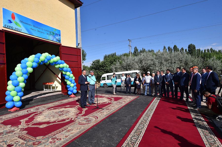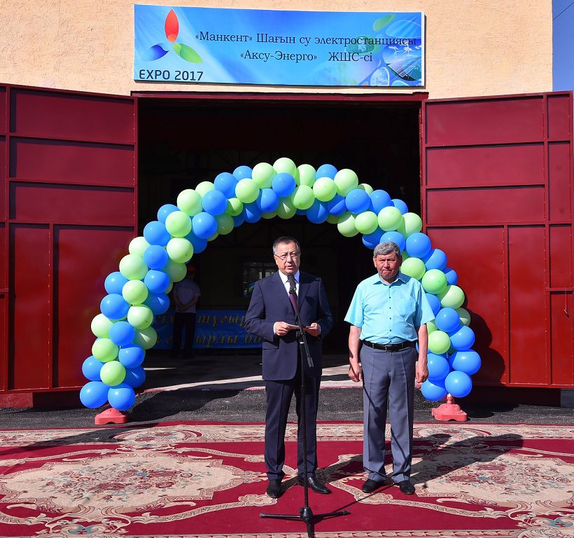 «О́zderińizge belgili, bıyl Astana qalasynda «Bolashaq energııasy» taqyrybynda EKSPO-2017 halyqaralyq mamandandyrylǵan kórmesi ótip jatyr. Álemdik deńgeıde ótkizilip jatqan EKSPO-2017 halyqaralyq kórmesi tehnıkalyq jetistiktermen, jańǵyrmaly energııa kózderiniń moldyǵymen, ǵylymǵa umtylýdyń mańyzdylyǵymen búkil álemniń nazaryn aýdarýda. Memleket basshysy N.Á.Nazarbaev 2050 jylǵa deıin jańǵyramaly energııa úlesin 50 paıyzǵa deıin kóbeıtýdi qamtamasyz etýdi tapsyrdy. Búgingi iske qosylǵan elektr stansııasy taza elektr energııa óndirýmen qatar, energo resýrstardy únemdeýge baǵyttalǵan»,-dedi ákim óz sózinde.