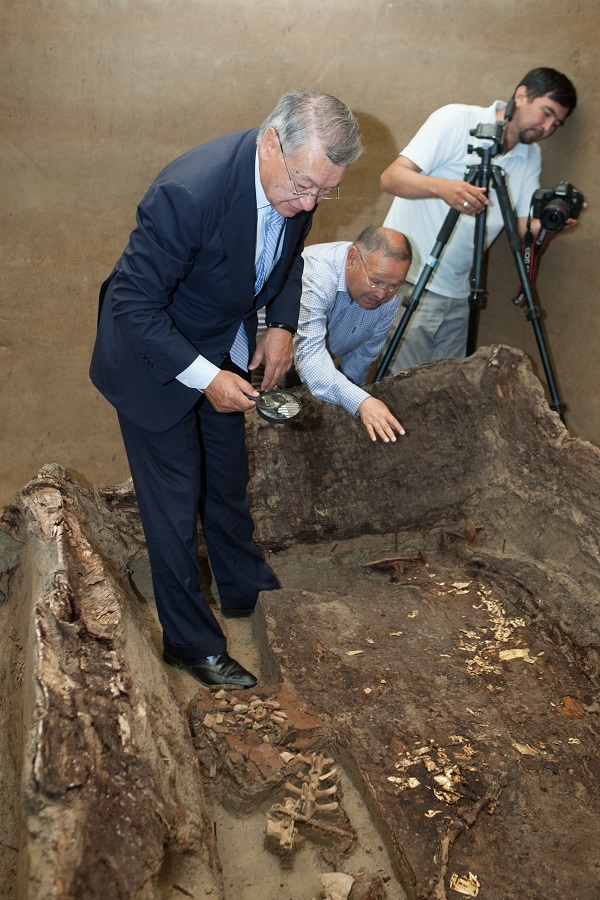 Oblys ákimi Danıal Ahmetov qorymnyń basynda bolyp, Zeınolla Samashevpen birge qabirge túsip, tabylǵan áshekeılerdegi janýarlardyń keskinin kózben kórdi.