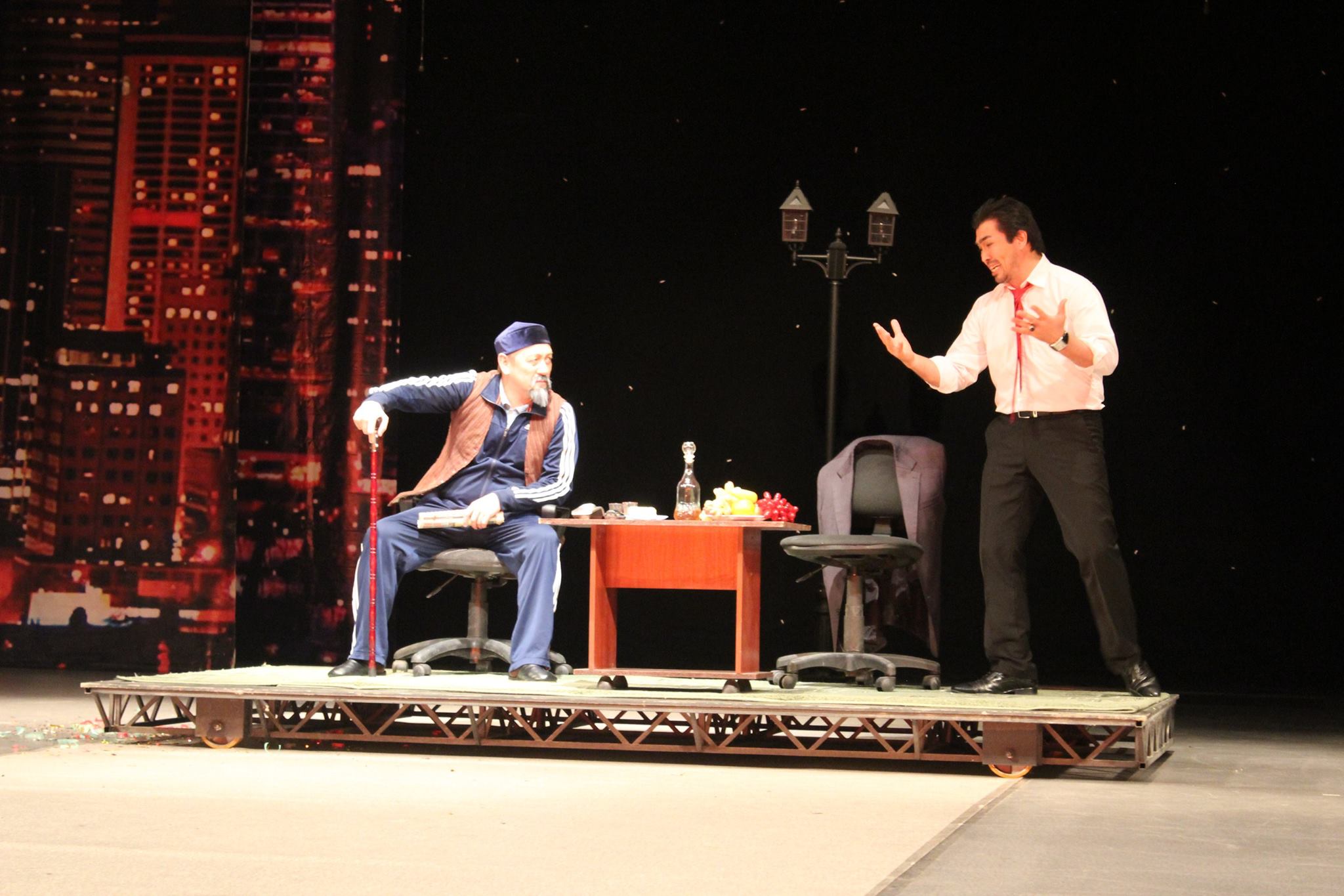 −Almatydaǵy Ǵ.Músirepov teatryna  70 jyldyń basynda akter bolyp  kelgenmin.  Bul Nurlan Orazalınniń  eń alǵashqy dramalyq shyǵarmasy bolatyn. Bul shyǵarma alǵash ret 1972−73 jyly sahnalandy. Sol jerde Tańattyń rólin men oınaǵan bolatynmyn. Sol jyldary qazaq teatrynda rezonans týdyrǵan, úlken  anshlagpen ótken spektakldiń biri boldy. Tipti  9-10 jylǵa deıin sahna tórinen túsken joq.  Astana Jastar teatrynda júrip jatqanyna da 4 jyldaı ýaqyt boldy.  О́zgesheligi qazirgi kózqarasqa jaqyn, burynǵy formattaǵy tekstterdi alyp tastadyq, adamı tartystarda ǵana qaldy. Dekorasııa jaǵynan da túrlenip, qazirgi zaman talabyna saı  jańasha usyndyq, kórermen jyly qabyldady dep oılaımyn − deıdi, rejısser Nurqanat Jaqypbaı.