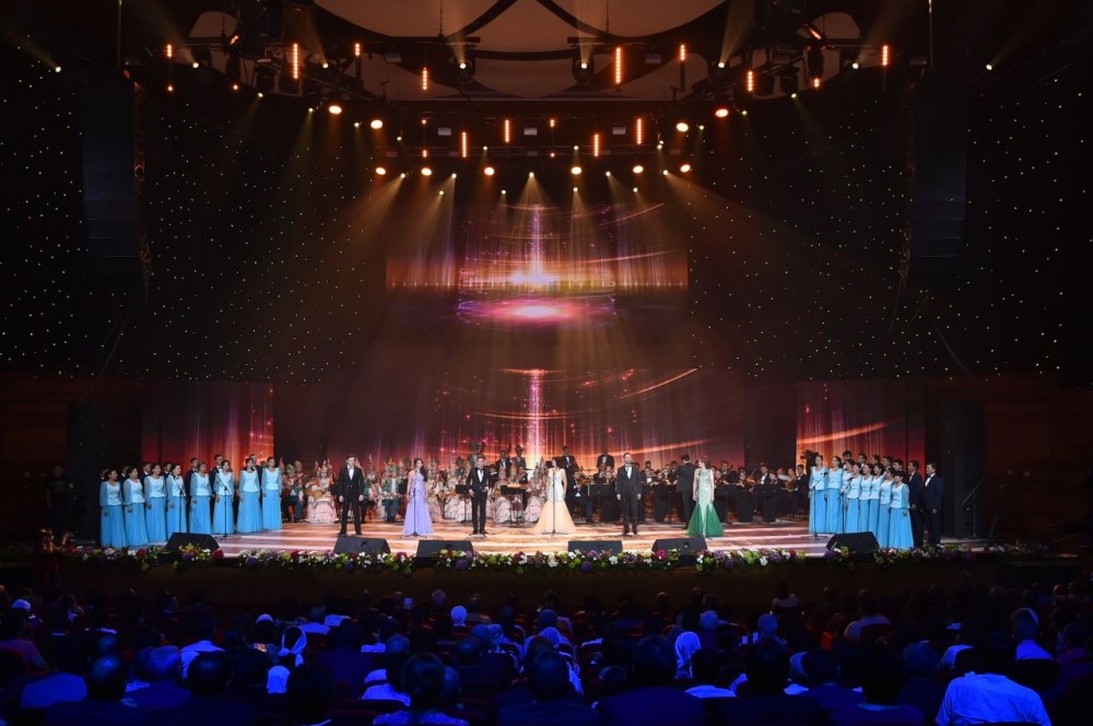 Elbasy N.Á.Nazarbaevtyń «Bolashaqqa baǵdar: Rýhanı jańǵyrý» maqalasynda kórsetilgendeı týǵan jerge degen súıispenshilikti arttyrý, Otan-ana men sarabdal saıasatty eldiń asqaq ómirin nasıhattaýǵa maqsatynda dúnıege kelgen N.Beıseqojaevtyń «Nurly jol» kúıi Sh.Qaldaıaqov atyndaǵy oblystyq fılarmonııanyń «Súgir» atyndaǵy ult-aspaptar orkestri, oblystyq opera jáne balet teatrynyń sımfonııalyq orkestri, «Ońtústik-Sırk» mekemesiniń «H-bend» estradalyq djaz ansambliniń oryndaýymen pash etilse, án padıshasy Shámshi Qaldaıaqovtyń ánderinen quralǵan poppýrı de óner súıer kórermenge jol tartty. Halyq ánderi men dástúrli ánder jáne sopranolar men tenorlardyń sherýi respýblıkalyq, halyqaralyq baıqaýlardyń jeńimpazdary atanǵan óner dúldilderiniń oryndaýymen B.Serdalynyń «Túrkistanym - Turanym» áni men «Qazyna» bı ansambli «Dala danalyǵy» bıi rýhty kóterip, jigerdi oıatar leppen oryndaldy.
