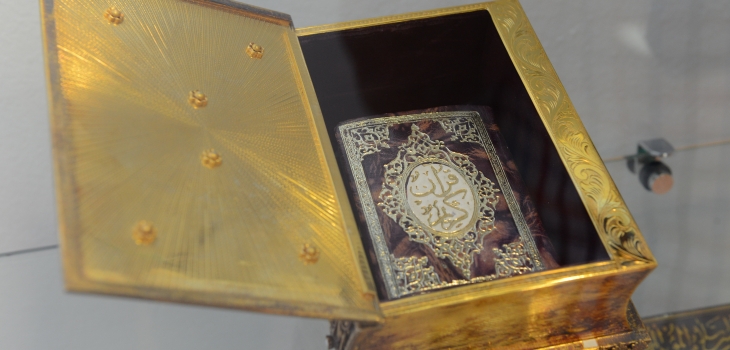 Ashyq ǵaryshta, «Mır» halyqaralyq ǵarysh beketinde bolǵan Quran basylymy toptamadaǵy erekshe jádigerlerdiń biri. Ony Memleket basshysyna otandyq ǵaryshker Talǵat Musabaev syıǵa tartqan.