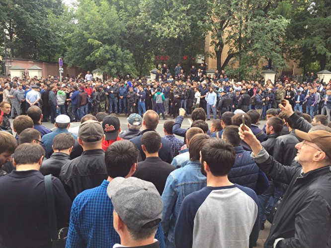 Basylymnyń jazýynsha, musylman senimindegi ondaǵan adam jınalyp, Mıanma áskerı úkimetiniń musylmandardy qýdalaýyna qarsylyq bildirýge shyqqan. Elshilik aldynda Mıanmadaǵy musylmandarǵa qoldaý bildirýge shyqqandar sany saǵattap artyp barady. Olar «Allahý ákbar» dep urandap, Mıanma bıligin terrorızm dep aıyptaýda. Máskeýlik quqyq qorǵaý organdary oqıǵany jiti baqylaýǵa aldy.