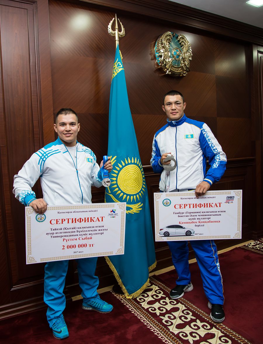 Aıtpaqshy, ótken aıda Qytaıdyń Taıpeı qalasynda HHIH Búkilálemdik jazǵy ýnıversıada ótken. Osy jarysta bizdiń ziltemirshi Rústem Sybaı ekinshi oryn alǵan edi. Álemdik arenada el namysyn qorǵap júrgen qos ulandy oblys ákimi Qyrymbek Kósherbaev arnaıy qabyldady. Eki jigitke eldiń yqylasyn jetkizgen aımaq basshysy «aldaǵy jarystaryńda kúmisteriń altynǵa aınalsyn» dep tilek bildirdi. Sonymen qatar, qos sportshynyń da bolashaqta altyn alatynyna, el namysyn abyroımen qorǵaıtynyna senetinin aıtty.