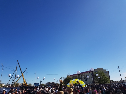 Eskertkish avtory - semeılik músinshi Nurbol Qalıev. Balqashtyń mysynan quıylǵan týyndynyń salmaǵy 12 tonna, bıiktigi tuǵyrymen qosa alǵanda 7 metr. Músinshi eskertkishti jasaýǵa 10 aı ýaqyt jumsaǵanyn aıtady.