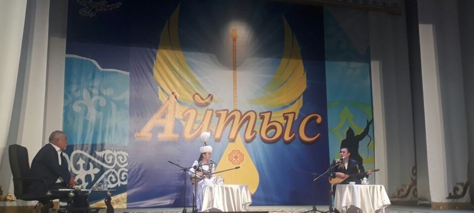 Arqalyq qalasyndaǵy jastar teatrynda ótip jatqan respýblıkalyq aıtys kórermenniń de, aqyndardyń da delbesin qozdyryp, qyza tústi. Qazir sahnada aıtysta tanylyp qalǵan aqyndar qostanaılyq Saltanat О́telbaeva men almatylyq Qaziret Berdihan tamasha aıtys úlgisin kórsetip jatyr. Eki aqyn qazaqtyń jarasymdy ázil-qaljyńyn aıtyp, kórermendi dý-dý kúlkige kómdi.