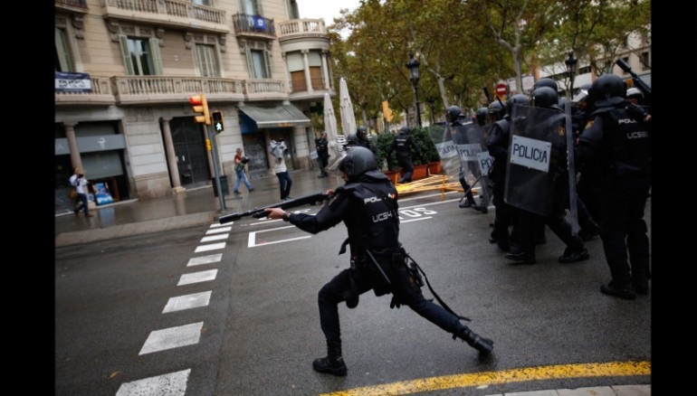 Tártip saqshylary referendýmdy boldyrmas úshin demonstranttarǵa qarsy rezeńkeli oqtar paıdalanǵan. Shamamen 2300 daýys berý ornyn ashý josparlanǵan bolsa, polıseıler onyń 319-yn kúshpen jaýypty.