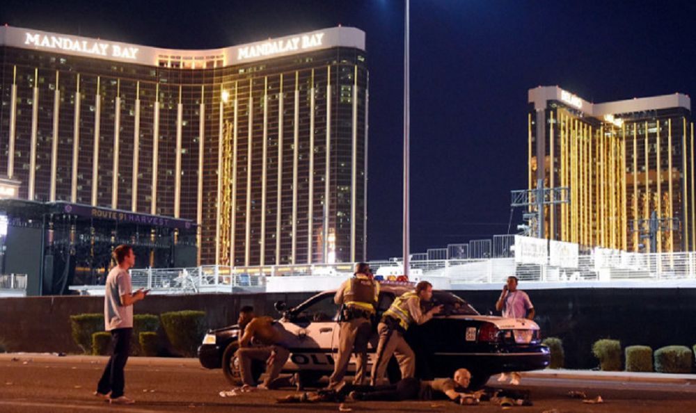 Kantrı mýzykasynyń konsertine jınalǵan halyqqa Mandalaı-Beı qonaqúıiniń 32-qabatynan qala tóńireginiń turǵyny, 64 jastaǵy Stıven Paddok avtomatty vıntovkamen oq atyp, 59 adamdy jer jastandyryp, 527 adamdy jaralady. Bul qantógis AQSh-taǵy eń qanquıly qylmys dep tirkeldi.