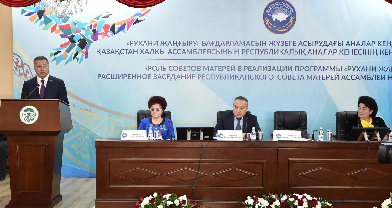 Shymkent qalasyndaǵy Qazaqstan ınjenerli-pedagogıkalyq Halyqtar dostyǵy ýnıver¬sıtetinde jınalǵan analar «Rýhanı jańǵyrý» baǵdarlamalyq maqalasyn iske asyrýdaǵy Analar keńesiniń rólin talqylady. Jıynǵa Qazaqstan halqy Assambleıasy tóraǵasynyń oryn-basary, hatshylyq meńgerýshisi Darhan Myńbaı, Ońtústik Qazaqstan oblysynyń ákimi Janseıit Túımebaev, QR Bas prokýratýrasy men QHA qyzmetkerleri, ǵalymdar, respýblıkalyq qoǵamdyq uıymdardyń jetekshileri, barlyq oblystardaǵy Analar keńesteriniń tóraıymdary qatysty.