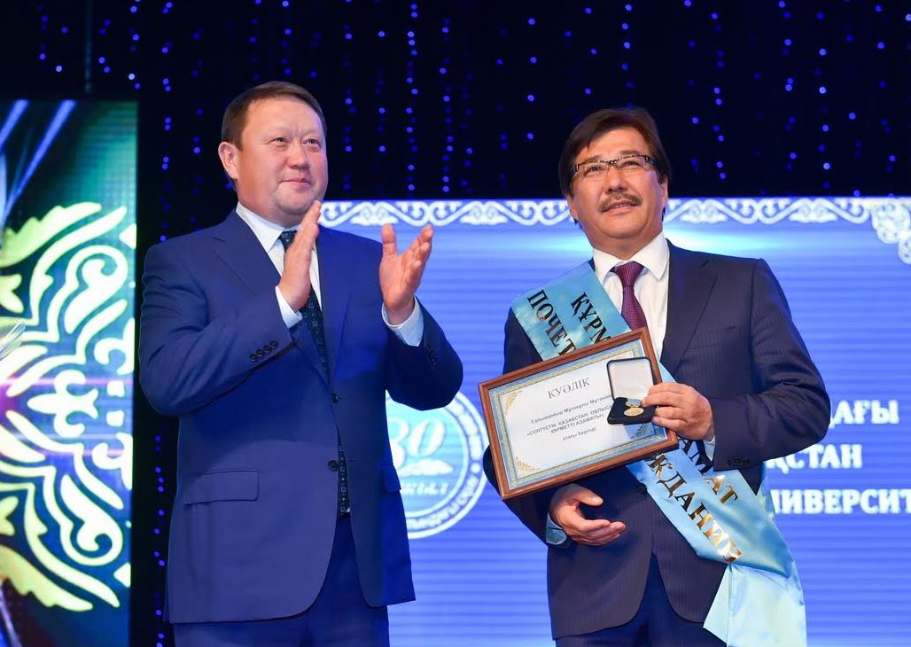 Pogodın atyndaǵy orys drama teatrynda ótken saltanatty mereıtoıǵa Bilim jáne ǵylym mınıstri Erlan Saǵadıev qatysyp, Premer-Mınıstr Baqytjan Saǵyntaevtyń quttyqtaý hatyn oqyp berdi. Jańarý men jańǵyrý jolynda bıik belesterdi baǵyndyrǵan ýnıversıtet ujymyna shyǵarmashylyq tabystar tileı kelip, stýdentterge sapaly bilim, sanaly tárbıe berýde erekshelengen bir top professor-oqytýshylardy «Eńbek ardageri» medalimen, «Y. Altynsarın atyndaǵy», «Qazaqstan Respýblıkasynyń bilim berý isiniń qurmetti qyzmetkeri» tósbelgilerimen marapattady.
