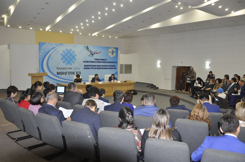Jıyndy sóz sóılep ashqan Aqmola oblystyq ishki saıasat basqarmasy basshysynyń mindetin atqarýshy Arhat Aıbabın «Rýhanı jańǵyrý» baǵdarlamasy boıynsha óńirimizde 107 joba qolǵa alynǵandyǵyn atap kórsetti. Solardyń eń bastylary Býrabaı, Qorǵaljyn jáne Zerendi aýdandarynda shoǵyrlanǵandyǵyn aıta ketken jón. «Býrabaı aýdany boıynsha «Abylaı han alańy» memorıaldyq stellasy, Ereımentaý aýdanynda «Qumaı» arheologııalyq kesheni salyndy jáne de Qorǵaljyn aýdanynda kóptegen sharýalar atqarylýda. Sonymen qatar bilim, mádenıet salasynda kóptegen sharalar nazardan tys qalmaǵan. Oblysymyz tabıǵı baılyqtary ǵana emes, sonymen birge rýhanı qundylyqtary da mol óńir sanalady. Sondyqtan da «Rýhanı jańǵyrý» baǵdarlamasy boıynsha úlken úles qosatynymyzǵa nyq senimdimiz», dedi A.Aıbabın.