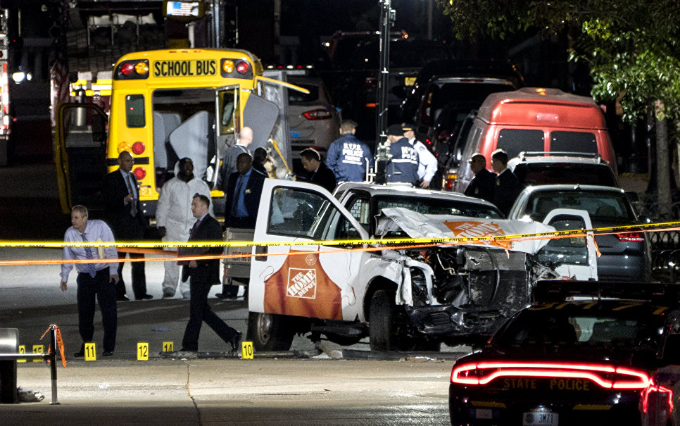 Home Depot kompanııasynan 50 AQSh dollaryna shaǵyn júk kóligin jalǵa alǵan júrgizýshi jergilikti ýaqyt boıynsha saǵat 15:15-te (Astana ýaqyty boıynsha 01:15) Nıý-Iorktegi Manhettenniń ortalyǵynda jaıaý júrginshilerge qarsy shabýyl uıymdastyrdy. Ol Ýest-strıt aýdanynda ornalasqan velosıped jolyna shyǵyp, aldyna kezikken barlyq dúnıeni qıratyp, 17 oram júrip ótken. Kólik mektep avtobýsymen soǵysqannan keıin ǵana toqtaǵan. Káýgerler sózine sensek, toqtaı salysymen, ol «Allahý Akbar» dep aıqaılap, qarý alyp, qashpaq bolǵan. Sol mezette polısııa qyzmetkerleri ony jaralaǵan. Belgili bolǵandaı, kúdikti qolyndaǵy qarýlardyń biri peıntbol oıynyna arnalǵan bolsa, ekinshisi pnevmatıkalyq tapansha edi. Nátıjesinde segiz adam ajal qushyp, on bir adam ártúrli jaraqattarmen aýrýhanaǵa tústi.
