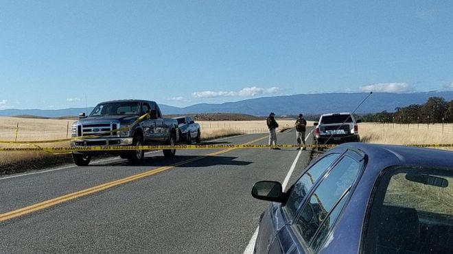 Oqıǵa seısenbi kúni tańerteń Tehama fermasynda bolǵan. Beıtanys óz úıiniń mańynda oq atyp, artynsha mektep aýmaǵyna ótken. Jergilikti turǵyn ony tanıtyndyǵyn, jasy elýler shamasynda ekenin aıtty.