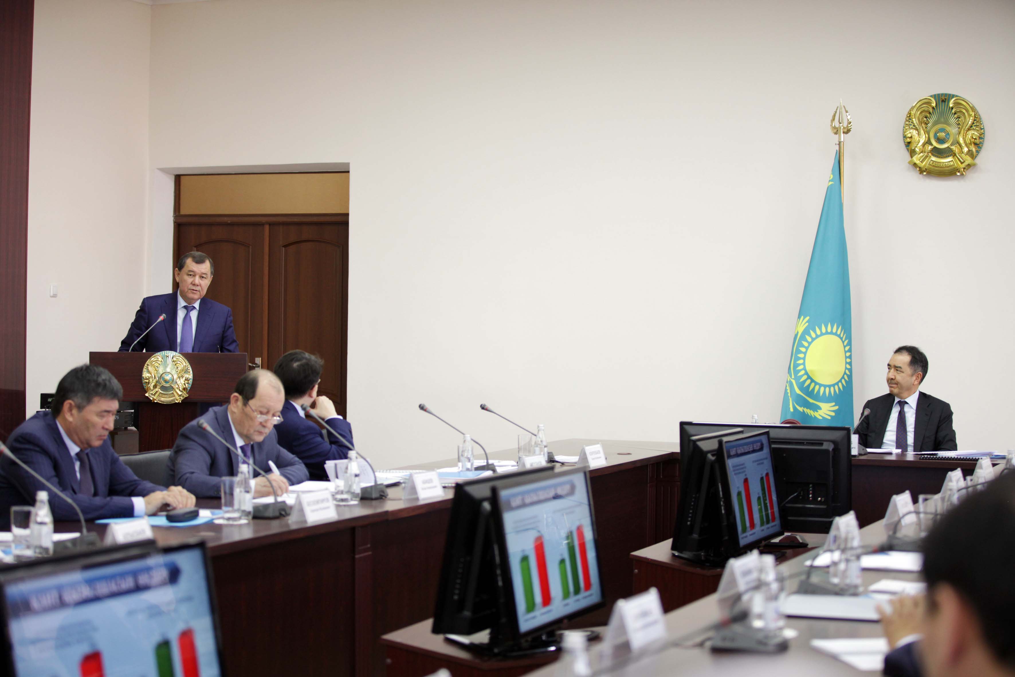 Budan keıin Jambyl oblysynyń ákimi Kárim Kókirekbaev oblystyń agroónerkásip kesheniniń búgingi jaı-kúıi jáne ony damytý perspektıvalary jóninde sóıledi. О́z sózinde ákim óńirdiń aýylsharýashylyǵy salasy jyl sanap damý ústinde ekenin, buǵan Agroónerkásip keshenin damytýdyń 2017-2021 jyldarǵa arnalǵan memlekettik baǵdarlamasynyń iske asyrylýy oń septigin tıgizip otyrǵanyn aıtyp ótti. «Baǵdarlama aıasynda bıylǵy jyly salany damytýǵa 16 mıllıard teńgeden astam qarjy bólindi. Memlekettik qoldaýdyń nátıjesinde, búgingi kúni 220 mıllıard teńgeniń ónimi óndirilip, ónim kólemi 3,6 paıyzǵa artty. Keler jylǵa oblystyń aýyl sharýashylyǵyn damytýǵa jergilikti bıýdjetten 10,5 mıllıard teńge qarastyrý josparlanýda», dedi ákim.