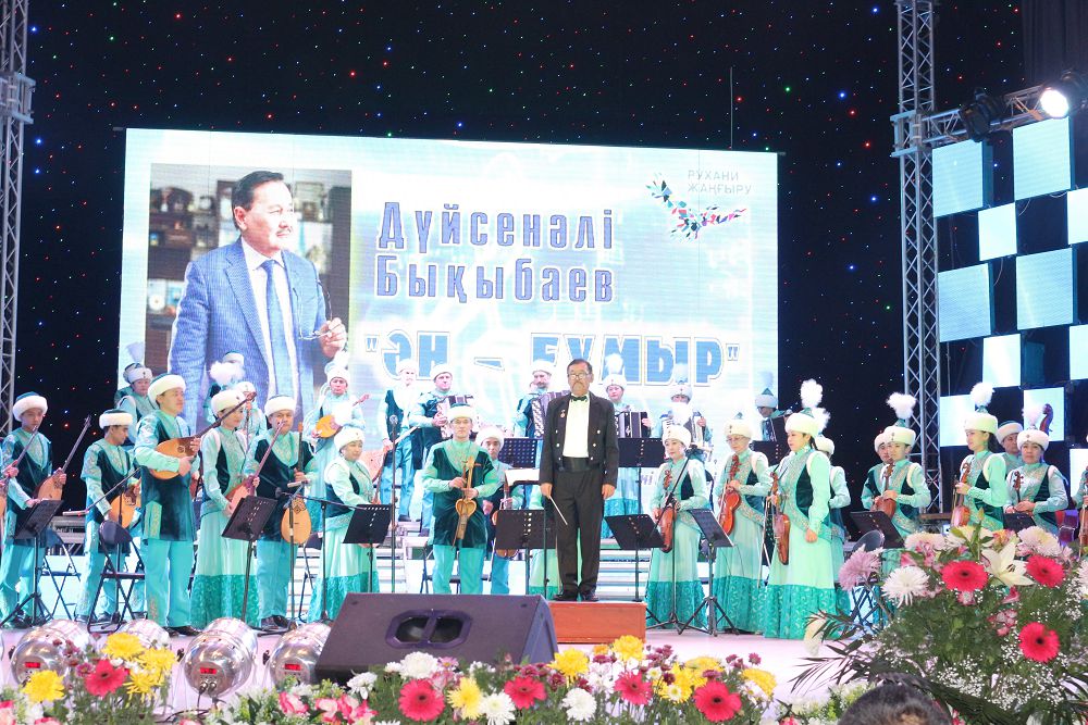 Shyǵarmashylyq keshtiń shymyldyǵy kompozıtordyń «Babalar rýhy», «Jýsandy dala» atty kúılerimen ashylyp, atalǵan shyǵarmalardy dırıjer Muhtar Rahmanqulov jetekshilik etken qazaq ult-aspaptar orkestri oryndady. Dúısenáli Byqybaev «Biz ekeýmiz», «Elikteı erke qyz», «Aǵaıyn» jáne basqa da ánderimen tyńdarman qaýymǵa belgili. Marfýǵa Aıthojına, Ábdirahman Asylbekov, Jańyl Asylbekova sııaqty belgili aqyndarmen shyǵarmashylyq baılanysta bolǵan kompozıtor shyǵarmashylyǵy bul kúni elimizge tanymal ánshilerdiń oryndaýynda Áýlıeata aspanynda qalyqtady. Dosymjan Tańatarov, Saıat Medeýov, Gúlnur О́mirbaeva, Ádil Slamhan, Dana Mahanbaeva, Aıgúl Maqasheva, Maralbek Babaqulov, Ǵanı Mátebaev jáne ózge de óner ıeleri kompozıtordyń ánderin naqyshyna keltire oryndap, kórermenniń qoshemetine bólendi.