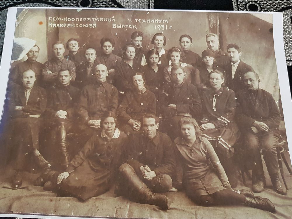 Janahmet Sársenov (ekinshi qatarda oń jaqtan birinshi) Semeı kooperatıvtik tehnıkýmynyń stýdentterimen birge, 1932 jyl, 1 qańtar