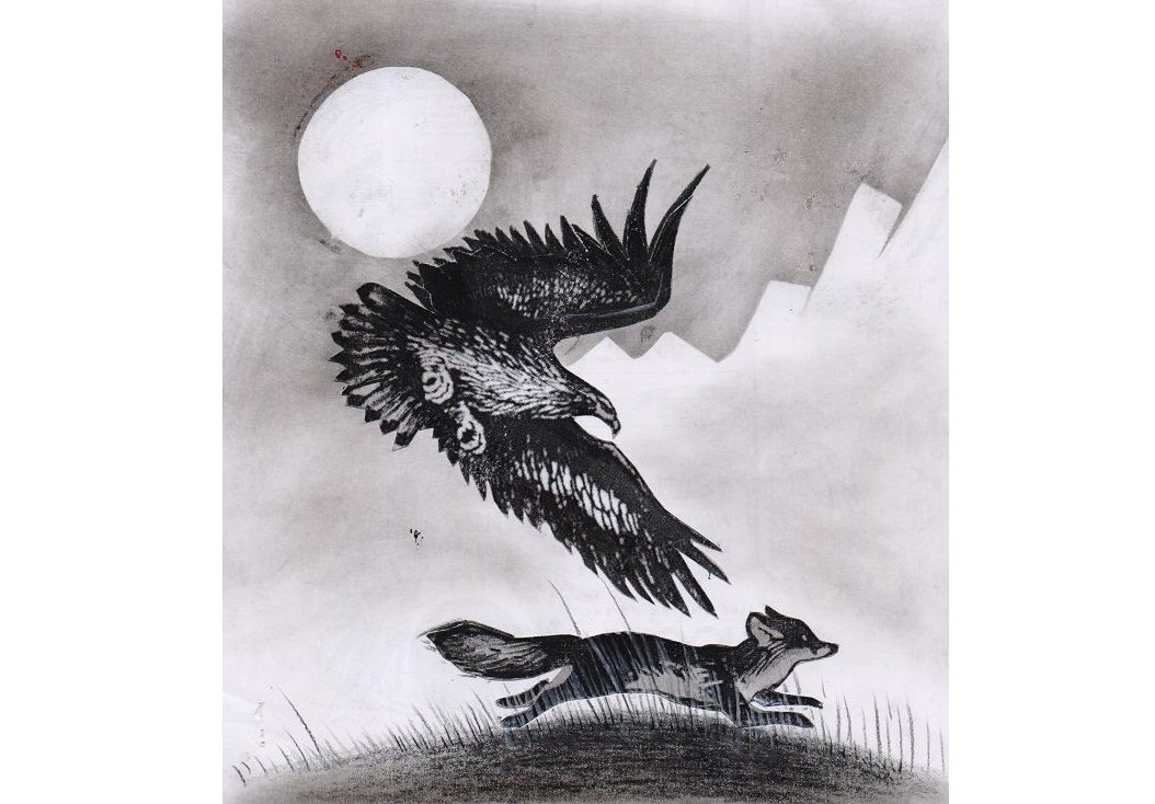Kópten kútken qansonar da kelip jetti. Jarasbaı qasyna qaǵýshysyn ertip, qolynda bala qyrany ań qaǵýǵa shyǵady. Qustyń tomaǵasyn tartqany sol edi, shartarapqa umsynyp ólip barady. Týra taban astynan sýmań etken túlkiniń bulań quıryǵyn kózi shalyp qalǵan Jarasbaı qusyna qarap edi, ol da baıqaǵan eken, ıyǵyn qomdap suranyp tur. «Bısmıllah» dep bosatyp qoıa beredi. Búrkitti ańǵarǵan qý túlki butaly jylǵany qýalap órge qaraı tartyp barady. Bala qyran bir dúrkin shúıilip kep, jalt berip oraı soǵyp túlkini sheńgeldep aldy. Jer qııa bolǵandyqtan ilgen jerinde túlkini baspaı súırete kóterip jazyqqa alyp tústi. Eger ana qııada basqanda qustyń ózi tepe-teńdik saqtaı almaı aýnap ketýi ábden kádik-tin. Bul naǵyz aılaly qyrandarǵa tán qımyl.