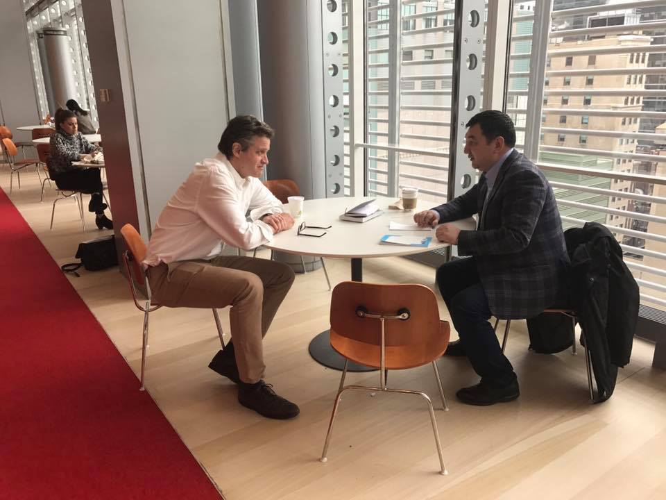 «Egemen Qazaqstan» RG» AQ Basqarma tóraǵasy Darhan Qydyráli men The New York Times qyzmetkeri Tomas Landon