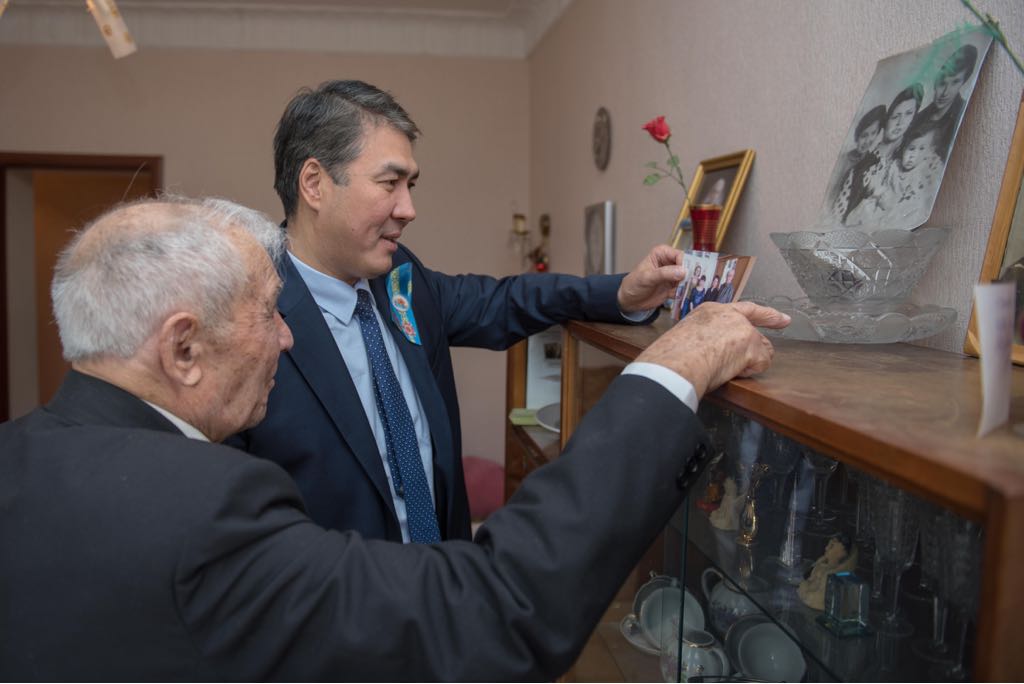 «Tóbemizdegi tunyq aspan úshin sizderge kóp rahmet. Sizder 4 jyl boıy qanshama qıyndyqtardan, ózderińizge qymbat adamdardy joǵaltý sátterin bastan ótkerdińizder. Jyl saıyn ardagerler azaıyp barady, biz aramyzdaǵy árbir batyrǵa alǵys aıtamyz, baǵalaımyz. Bizdiń mindet – sizderdi kózimizdiń qarashyǵyndaı saqtap, erteńgi urpaqqa erlikterińiz týraly aıtyp qaldyrý. Sizderge jáne jaqyndaryńyzǵa zor densaýlyq tileımin», – dedi ákim.