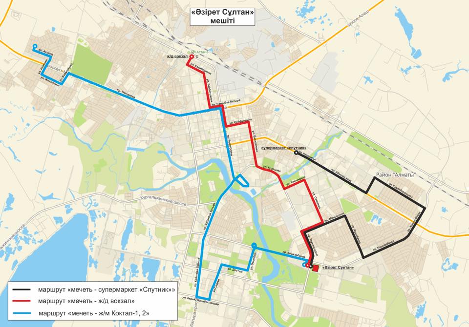 Avtobýs «Áziret Sultan» meshitine deıin myna baǵytpen júredi: