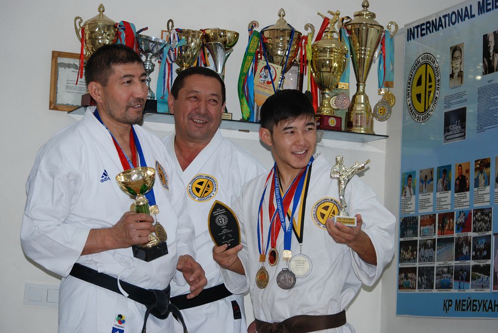 – Meıbýkandy Qazaqstanda men basqasha jolmen damyttym. Shákirtterim negizgi tásil-aılasy boıynsha áskerı samboǵa, qoıan-qoltyq urysqa, jıý-jıtsıǵa, aralas jekpe-jekke ózderin batyl qarsy qoıa alatyn dárejege jetti. «Mynaý qandaı karate?» dep tańdanǵandar kóp. Koreılerdiń karatesin mysymyzben-aq basyp tastaımyz. Oǵan ońaı jolmen jetkenimiz joq, árıne, áý basta qarsylastarymyzdy laqtyraıyq desek, bizdi laqtyryp jiberedi, uraıyq desek aldymyzdy alady, tyrp etkizbedi. Karateniń tarıhynyń ózi de solaı bastalǵan. Janyn aman alyp qalý úshin japondar barlyq amal jasaǵan ǵoı! Ekinshi dúnıejúzilik soǵystan keıin karate AQSh-taǵy damý barysynda «...kózden shuqıdy, buttan tebedi, saýsaq syndyrady, qulaqqa urady...» dep amal-tásilderdi qysqartyp, barynan jurdaı etken. Alla taǵalamnyń bizge bergen bir iltıpaty shyǵar, Okınavada meıbýkannyń taza túrindegi, saf kúıindegi sabaqtarynan dáris aldyq. Álippesin úırendik. Soǵystan soń amerıkalyq bazalar Okınavada qonystanǵanda áskerıler jappaı karate godzıý-rıýdi úırenedi. Odan AQSh-qa taratady. Áskerı jekpe-jektiń AQSh armııasynda óte jaqsy damýynyń negizi sodan. Amerıkalyqtar áli kúnge deıin okınavalyq ustazdardyń qyr sońynan qalmaıdy. Ol úshin qarajatyn aıamaıdy, bilesiz be? Barlyǵy 6 jyldyń ishinde Qazaqstan boıynsha on oblystan óz mektebimdi ashtym. Sońǵy tórt jyl boıy meıbýkan godzıý-rıýden Qazaqstan chempıonatyn ótkizip júrmin. Almaty men Astana qalalaryn qosqanda 12 komandamyz bar.